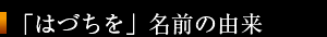- 山代温泉にある服部神社、そこに祀られている機織りの神様《天羽槌雄神:アメノハヅチヲノミコト》からいただいた名前です。